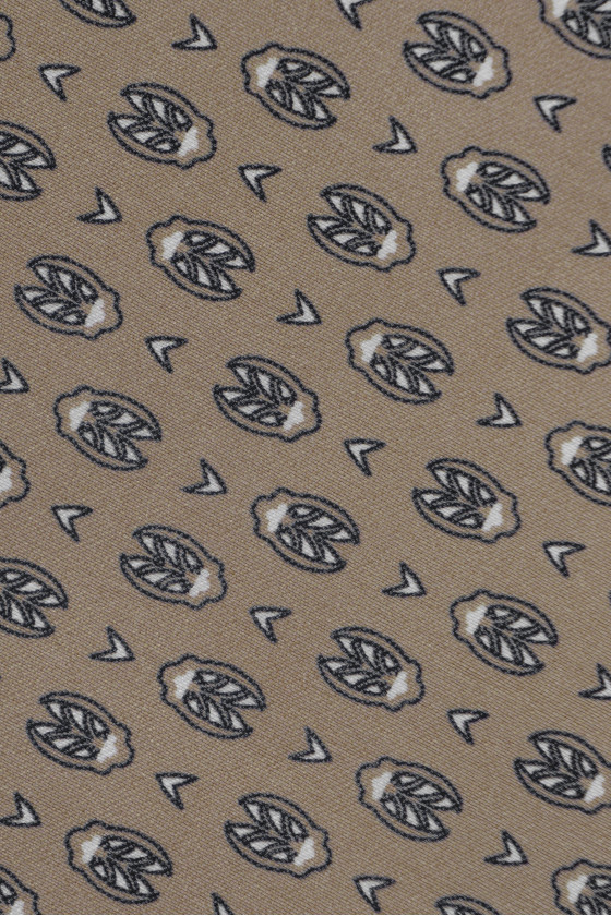 Itaalia kangas hall-beežis, väikeste mustritega - matt, kergelt jäik, väga elastne kangas. Ideaalne kitsaste pükste, seeliku, jope, sobiva kleidi õmblemiseks.