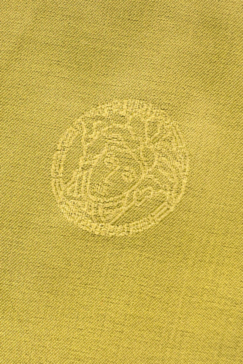 Itaalia viskoosvooder kollasena. Allkirjastatud tuntud moemaja logoga. Kangas on pehme, kergelt läikiv. Vooder ei sisalda elastaani, kuid töötab veidi kiududel. Ideaalne mantlite, jakkide, vestide, jakkide vooderdamiseks.