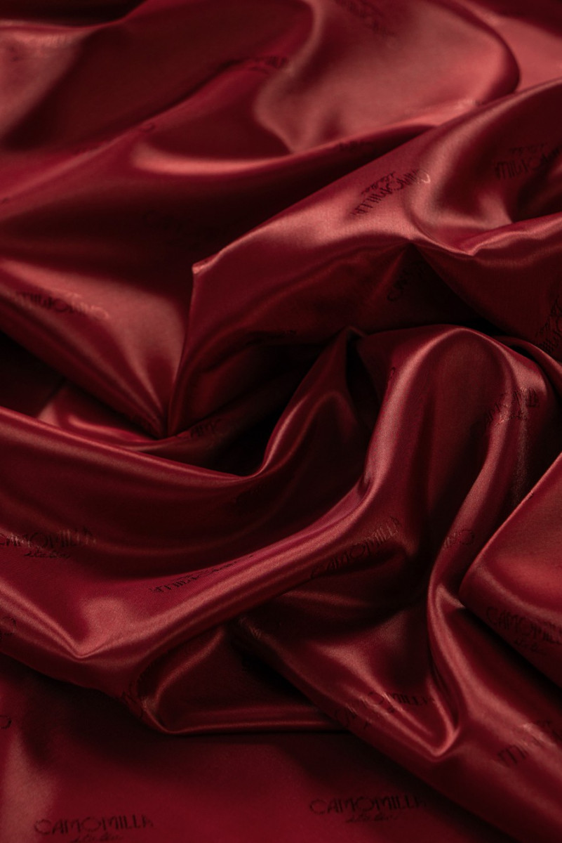 Itaalia vooder Burgundias. Allkirjastatud tuntud moemaja nimega. Kangas on elastne, kergelt läikiv. Ideaalne mantlite, jakkide, vestide, jakkide vooderdamiseks.