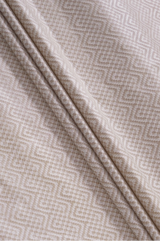 Itaalia jacquardi kostüümikangas. Huvitav siksakiline motiiv kreemis ja beežis.