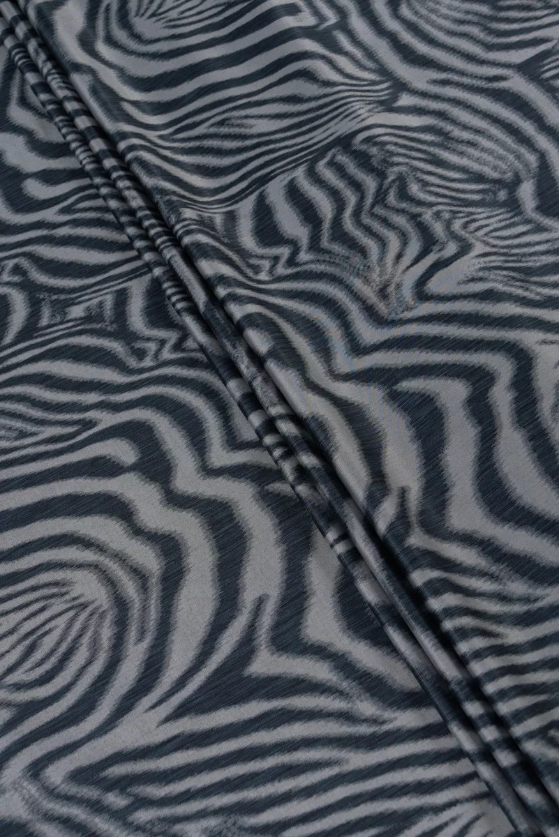 Itaalia jacquardi kostüümikangas musta ja halli sebramotiiviga. Kangas on õhuke, jäik, kergelt läbipaistev, kudumine sarnaneb võrguga.