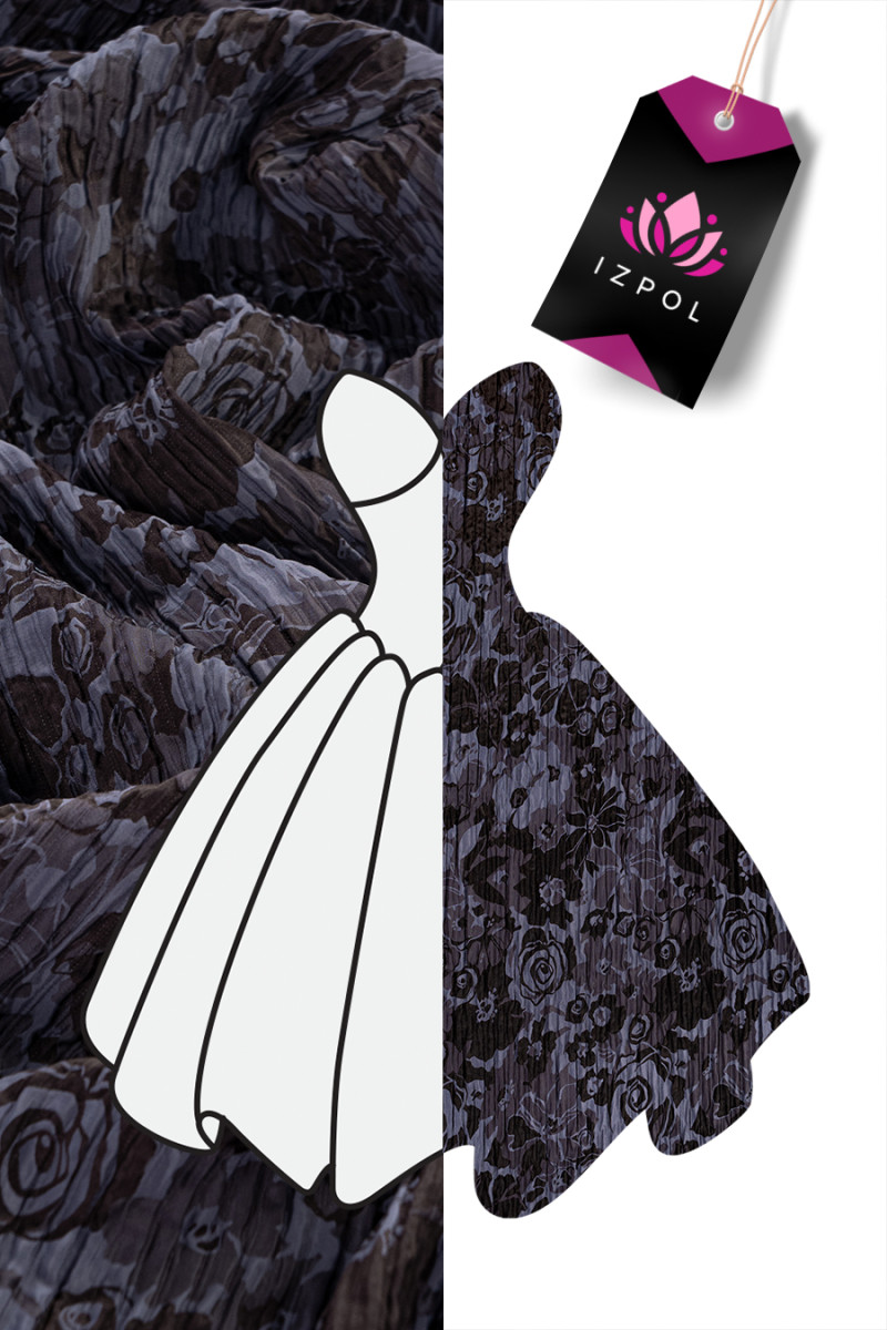 Itaalia jacquardi kostüümikangas summutatud lilla pruunide lillede motiiviga. Õhuke, pehme kangas, millel on väga huvitav, gofreeritud tekstuur.