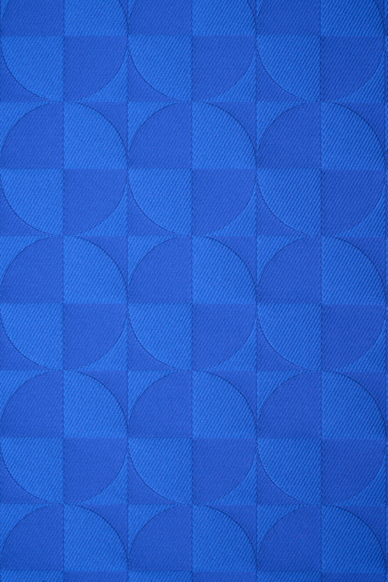 Itaalia jacquardi kostüümikangas geomeetrilise mustriga, mis koosneb ruutudest ja ringidest ilusas rukkilille sinises värvitoonis. Kangas on lihav, jäik, elastne. Õrna läikega viimistletud twill kudumine. Regulaarselt korduv muster mõõtmetega 6cm*6cm. See sobib suurepäraselt kerge mantli, seeliku, jope ja kleidi õmblemiseks.