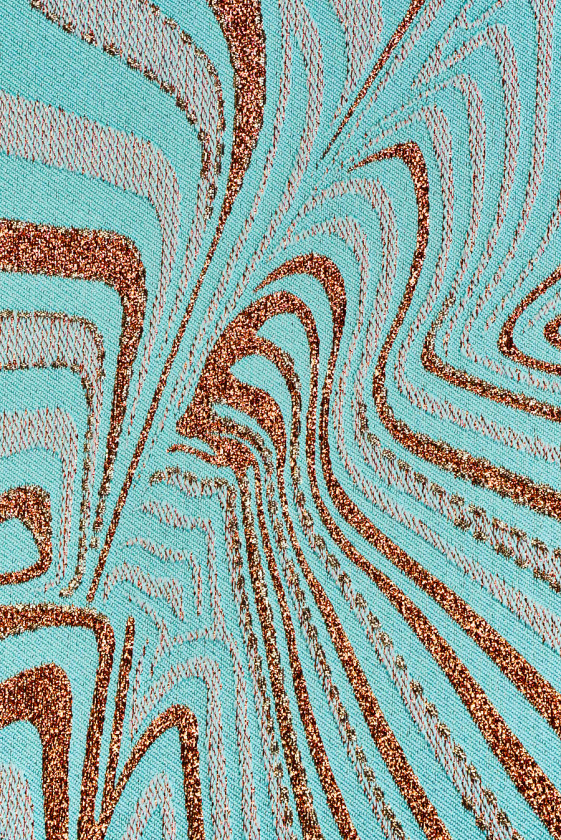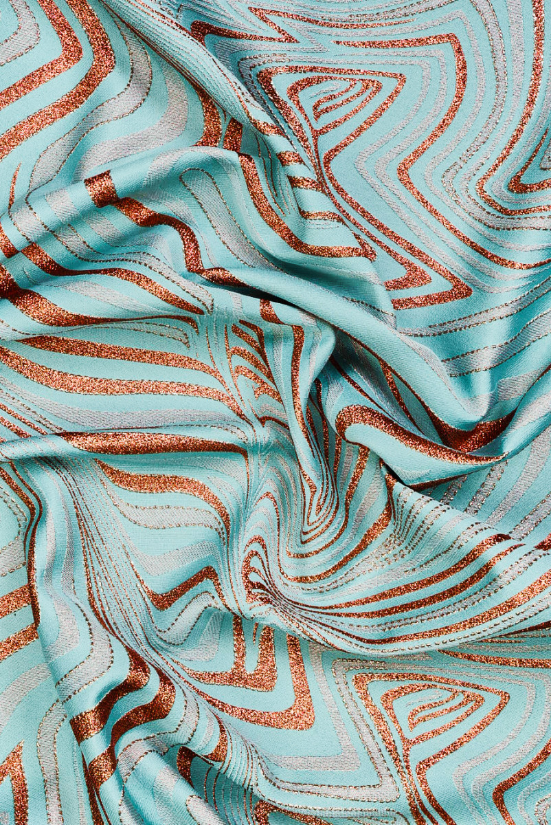 Itaalia žakaarkangas läikivate vasklainete motiiviga heledal salvei taustal. Kangas on õhuke, kuid täiesti läbipaistmatu, üsna pehme, mitteelastne, kerge ja väga suurejooneline. Soovitame kasutada voodrit. See sobib suurepäraselt pidulike rõivaste, näiteks kleitide ja seelikute jaoks. See sobib hästi ka jakkide, jakkide või heledate mantlitega. Saadaval on erinevad värviversioonid.