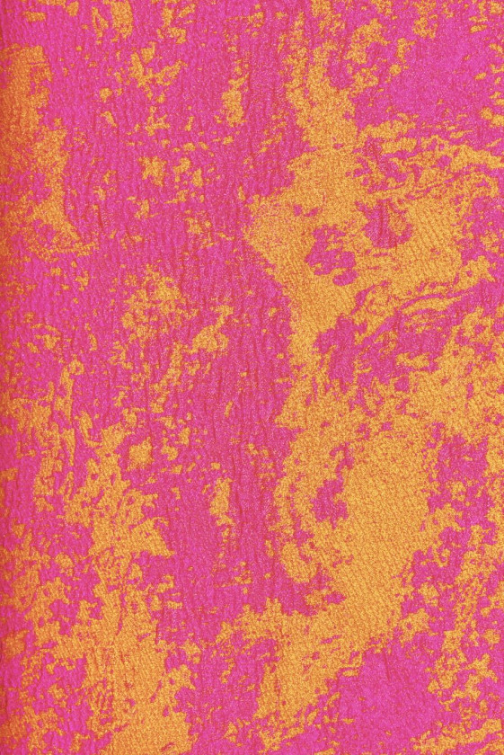 Žakaarkangas, mis on kootud huvitava abstraktse mustriga kahest värvi niidist: roosast ja oranžist. Ebakorrapärased motiivid on selged ja üsna suured. Kangas on õhuke, kuid läbipaistmatu, elastne, kergelt jäik paigutusega, nagu taft, on kauni läike ja õrna, kumera struktuuriga. Ainulaadne materjal, mis sobib suurepäraselt õhturõivasteks, nagu kleidid, seelikud või jakid. See sobib hästi ka dekoratiivkangana.