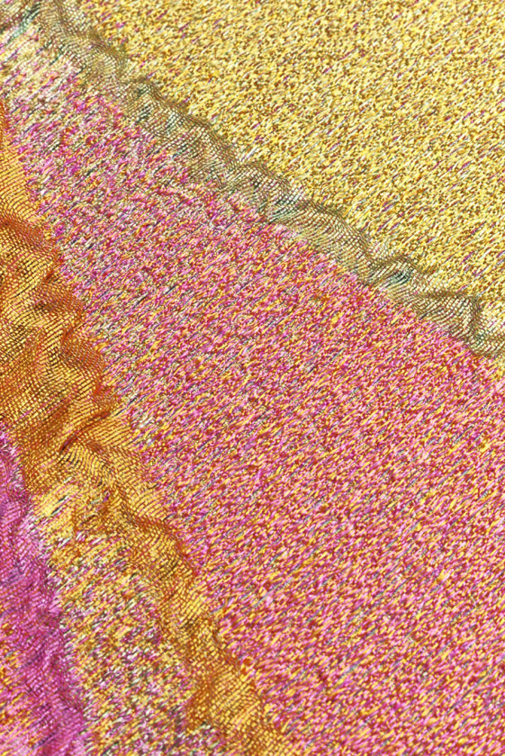 Žakaarkangas, mille motiiv meenutab värvilist vitraažakent. Üsna suur, korrapärane muster, mis koosneb kumeratest lainetest, kus nendevahelised ruumid on täidetud läikivate niitidega, mis moodustavad õrna struktuuri. Tervik on valmistatud roosa, oranži ja helerohelise toonis. Kangas on õhuke, kuid läbipaistmatu, kerge, elastne, paigutus on veidi jäik, kuid haardes pehme. Originaalne pakkumine värsketes suvevärvides sobib suurepäraselt kleitide, seelikute, jakkide ja isegi heledate mantlite jaoks.