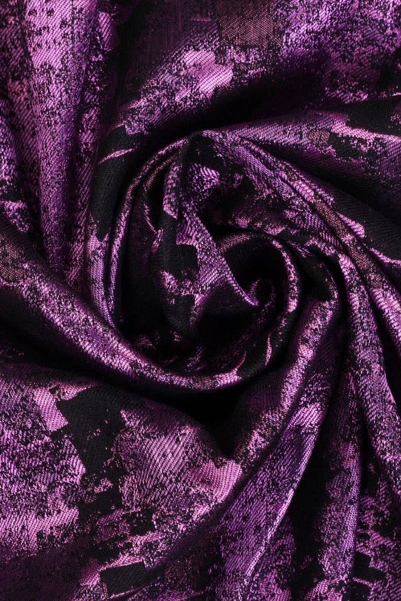 Žakaarkangas geomeetriliste motiividega lillas ja mustas värvitoonis. Keskmise suurusega mustrid paiknevad tihedalt, korrapäraselt ja paigutatakse joontesse. Suurim tükk on 2cm*2cm suurune. Kogu asi särab kaunilt, mis annab kangale ainulaadse välimuse. See on õhuke, kuid läbipaistmatu, sile ja pehme käepide, paindumatu ja kerge. See sobib suurepäraselt kostüümi, kleidi, seeliku, jope ja isegi pükste õmblemiseks.