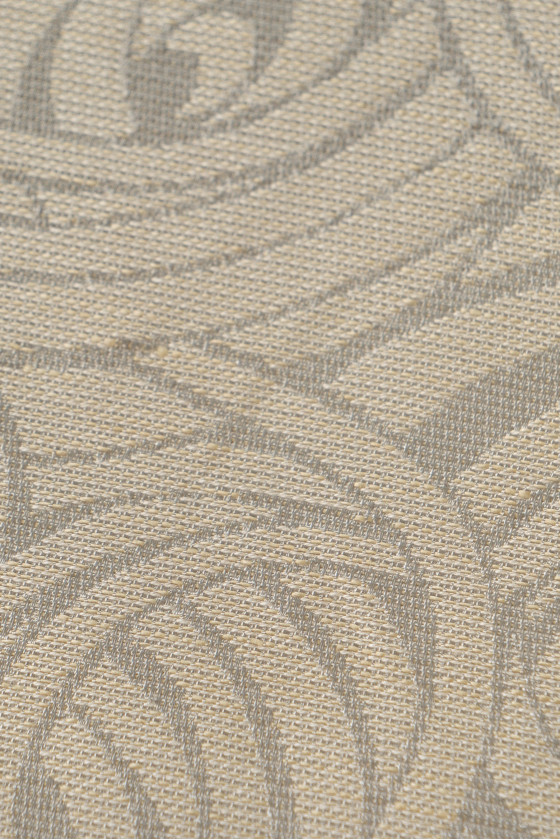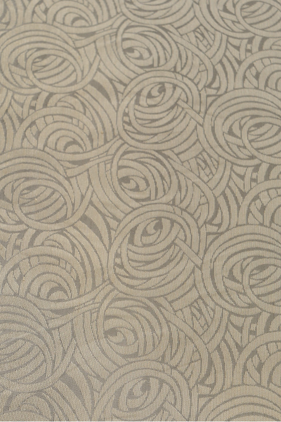 Jacquard kangas, mis on kootud viskoosist ja polüesterniitidest. Muster loob s-flores beežis, mis on segatud hõbedaga. Soovitame õmmelda kleidid, kostüümid, õhukesed mantlid või kasutada neid sisekujunduse kangana.