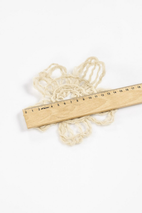 Olasz virág rátét bézs színű, természetes gyapjúból. Szélesség: 12 cm.