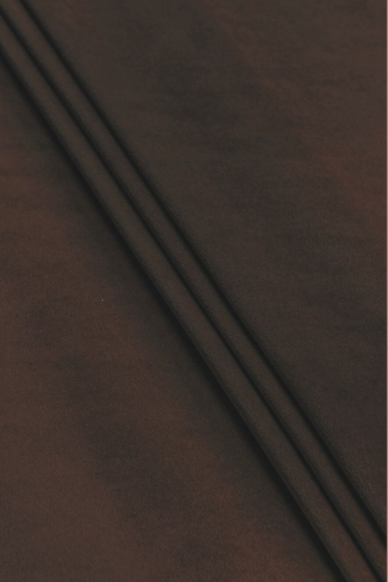 Olasz bársonyszövet barna színben. 100%-ban természetes pamutból szőtt anyag, jellegzetes, nagyon rövid hajjal. Ideális javaslat jelmez vagy kabát varrásához, mert a bársony húsos, rugalmatlan, sűrű szövésű és matt. Széles körben használható a belsőépítészetben is, pl. függönyök vagy párnák varrására.