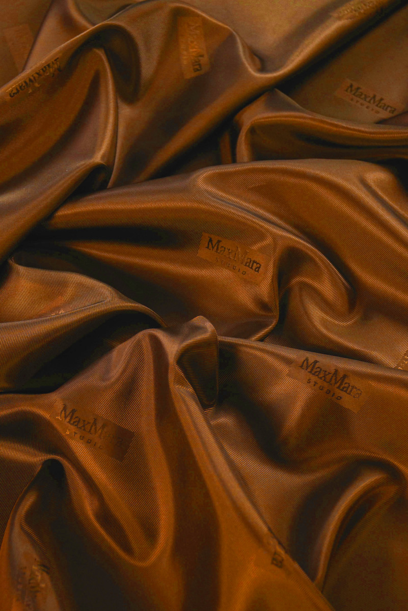 Olasz jacquard bélés 100% viszkóz rézbarna színben, egy jól ismert olasz divatház nevével. A bélés nem rugalmas, nagyon nemes ragyogású szövéssel. Természetes összetétele tökéletessé teszi kabát vagy kabát bélésének. Fantasztikus ajánlat azok számára, akik szeretik a márkás szöveteket.