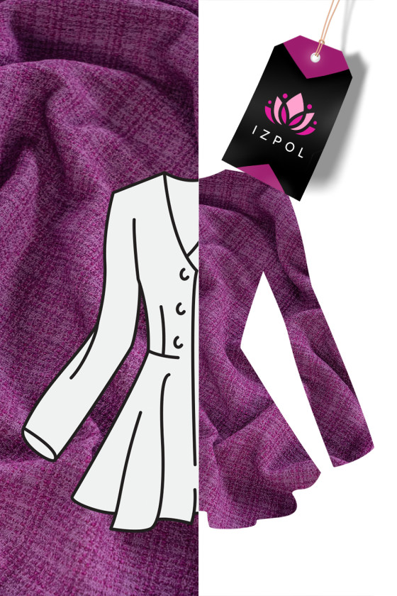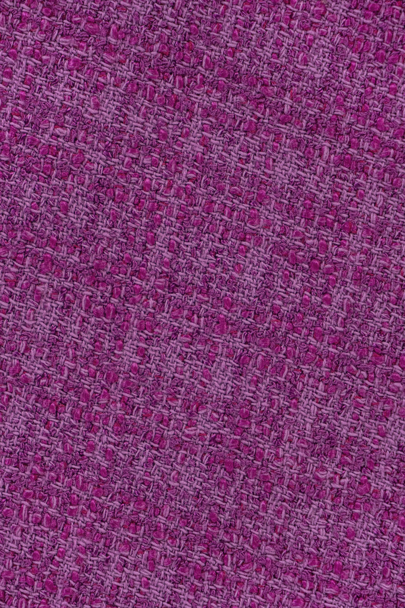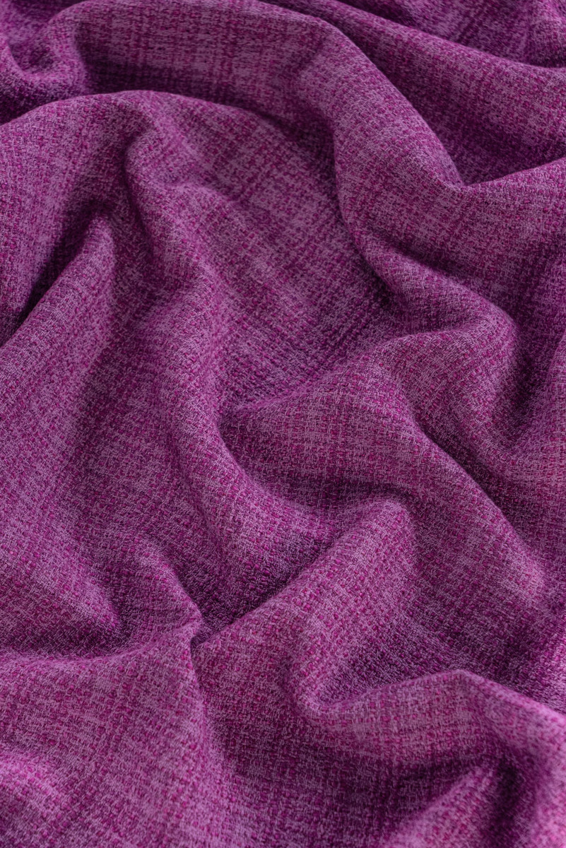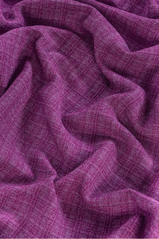 Olasz chanel jelmezszövet lila színben. A Chanel szövet egy nagyon elegáns, puha és húsos anyag, amely eredeti szövéséről ismert. Tökéletes jelmez, kabát, kabát, szoknya vagy vékony kabát varrásához.