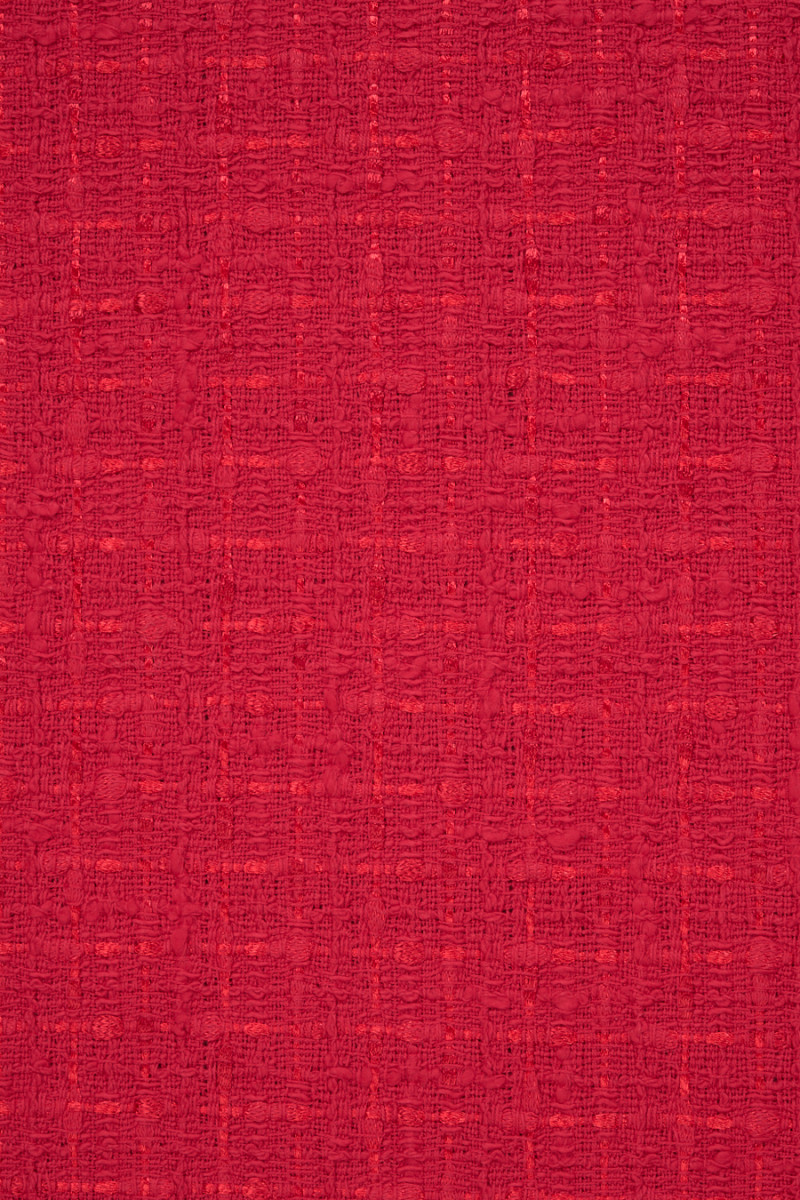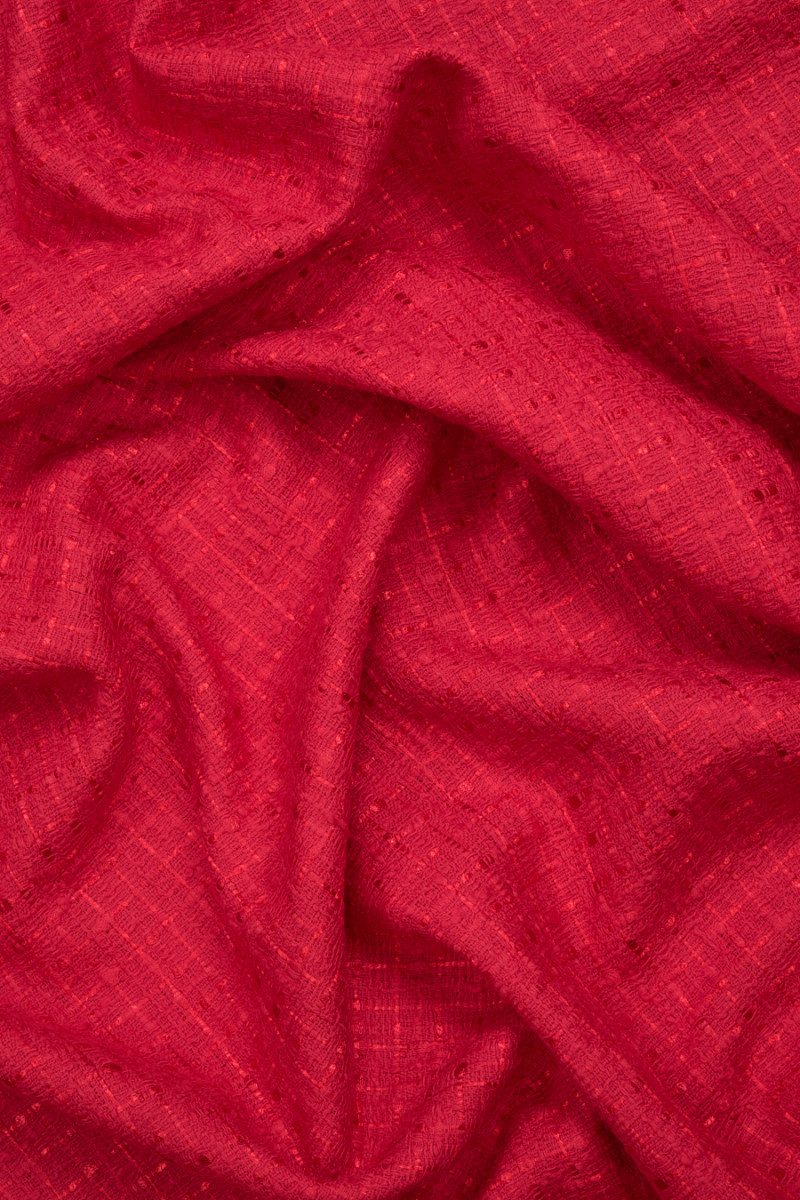 Olasz chanel jelmezszövet pirosban. A Chanel szövet egy nagyon elegáns, puha és húsos anyag, amely eredeti szövéséről ismert. Tökéletes jelmez, kabát, kabát, szoknya vagy vékony kabát varrásához.