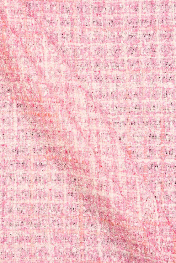 Olasz chanel jelmezszövet rózsaszín és fehér színben. Enyhén domború szerkezetű, lazább szövésű, kockás mintát alkotó szövet, főleg természetes szálakból készül, ezért nagyon kényelmes viselet, puha, nem rugalmas. Tökéletes elegáns és mindennapi ruhák varrásához. Nagyszerű ajánlat az időtlen színekben pompázó tweed szövetek rajongóinak.