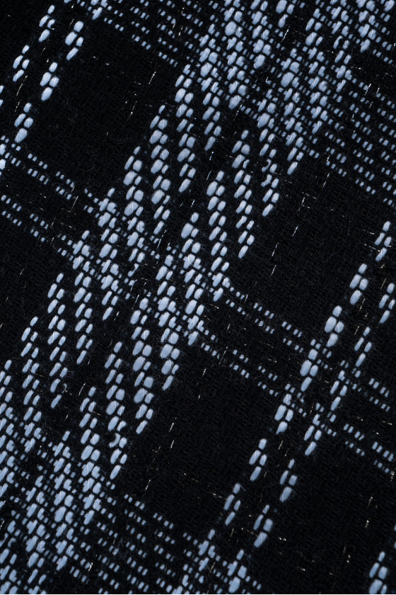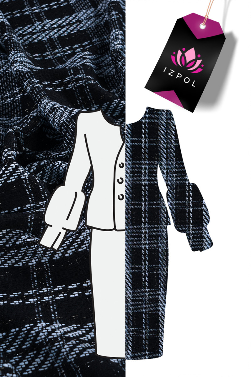 Chanel jelmezszövet divatos fekete-kék kockával, arany lurex szállal. Tökéletes jelmezek, ruhák, kabátok varrásához.