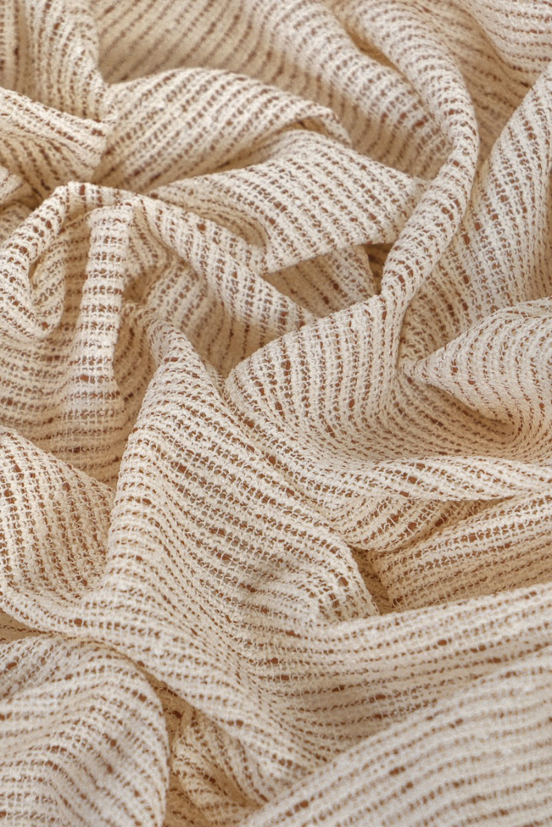 Chanel jelmezszövet laza szövéssel, átmeneti ruhákhoz, bézs és barna melange.