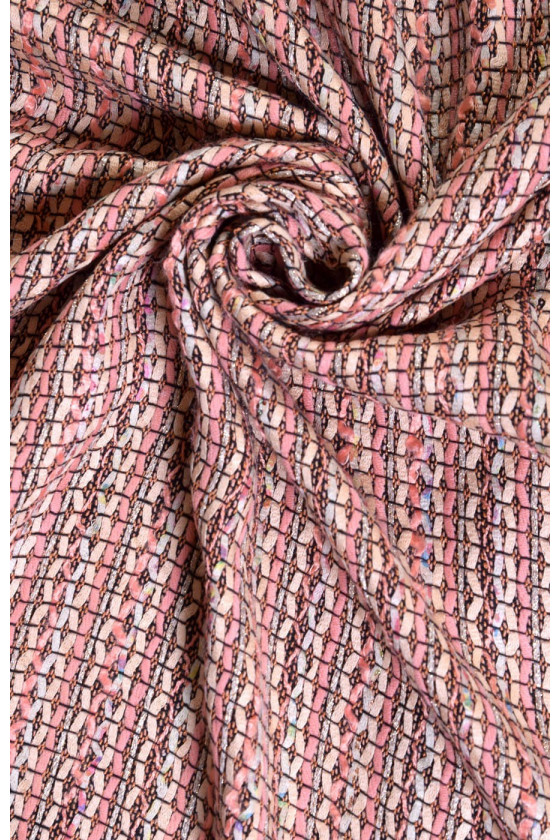 Eredetileg szőtt chanel jelmezszövet meleg rózsaszín és korall színekben, ezüst lurex szállal. Tökéletes olyan készletekhez, mint: kabát + szoknya vagy ruhák. . Bélést igényel.