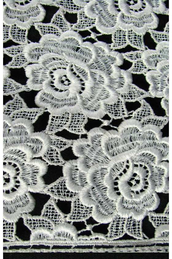 Guipure virágmintával. Keskeny szövet csak 45 cm. Tökéletes szoknyákhoz és ruhákhoz.