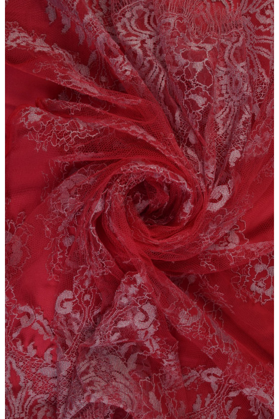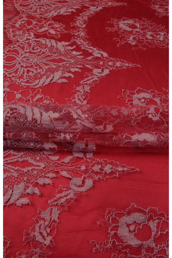 Gyönyörű korona mindkét oldalon piros és galambszürke foggal. Tökéletes blúzokhoz és ruhákhoz. Az alábbiakban olyan szövetek találhatók, amelyek megfelelnek a csipke színének.
