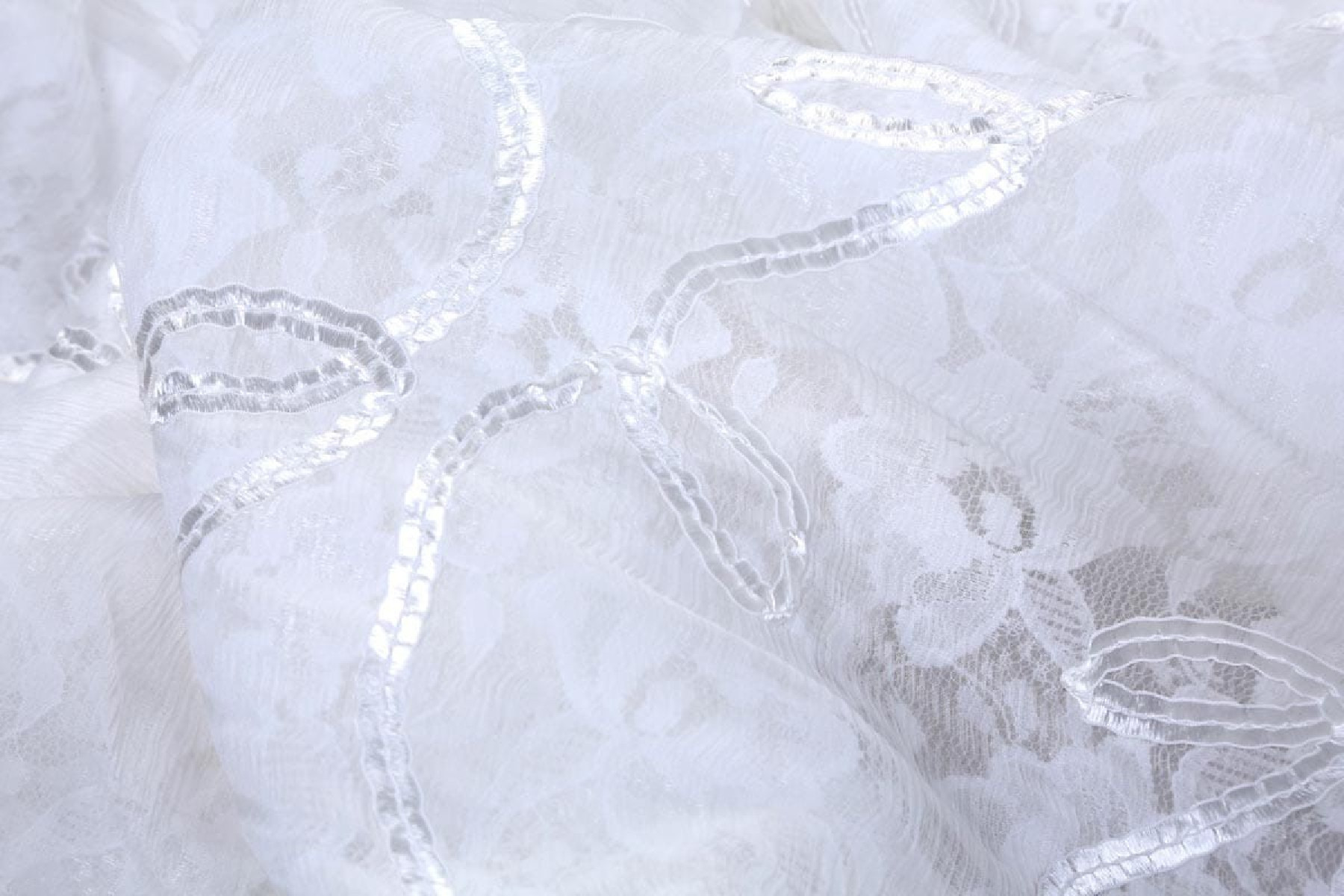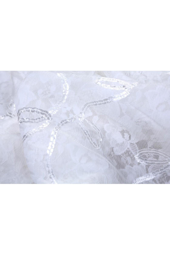 Érdekes javaslat a poliamid csipke és a selyem sifonok kombinálására. Tökéletes esküvői ruhákhoz, blúzokhoz.