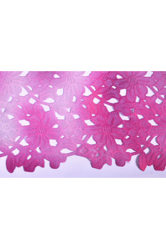Olasz guipure szövet rózsaszín és fehér színben - 160 cm* 125 cm méretű kuponban. Gyönyörű, sűrű minta, eredeti árnyékolással, a szövet két oldalán finom, dekoratív foggal van befejezve. Az anyag tökéletes azok számára, akik szeretik az eredeti színeket. Tökéletes elegáns ruha, blúz, szoknya varrásához vagy más szövetek befejezéséhez.
