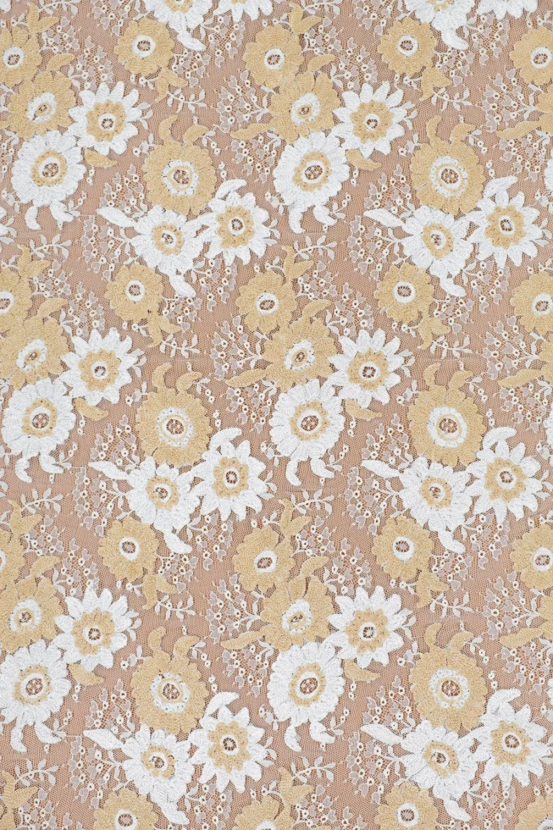 80 cm széles csipke hímzett ecru virágokkal és bézs színű. Fűzők, blúzok varrásához vagy betétekhez ajánljuk. Tökéletesen illik a selyem szaténhoz.