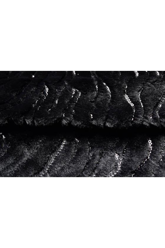 A tangenciális szőrzet elegáns változata fekete színben, kis fényes flitterekkel. Tökéletes mellényekhez, kabátokhoz, stolákhoz.