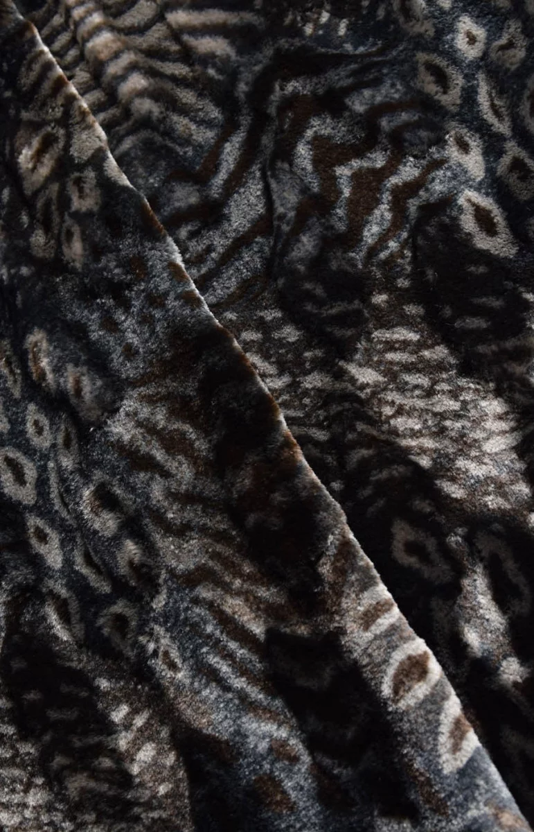 Természetes szálakból készült ökoszőrme - viszkóz és pamut (64/36%). Vastag, nehéz anyag. Ideális kabátokhoz vagy dzsekikhez