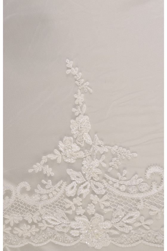 Ecru csipke, ideális esküvői ruhák befejezéséhez vagy fűző varrásához, mintamagasság 12-30 cm. Szövet az utolsó kuponban 60*260cm, gazdagon megmunkálva gyöngyökkel és gyöngyökkel.
