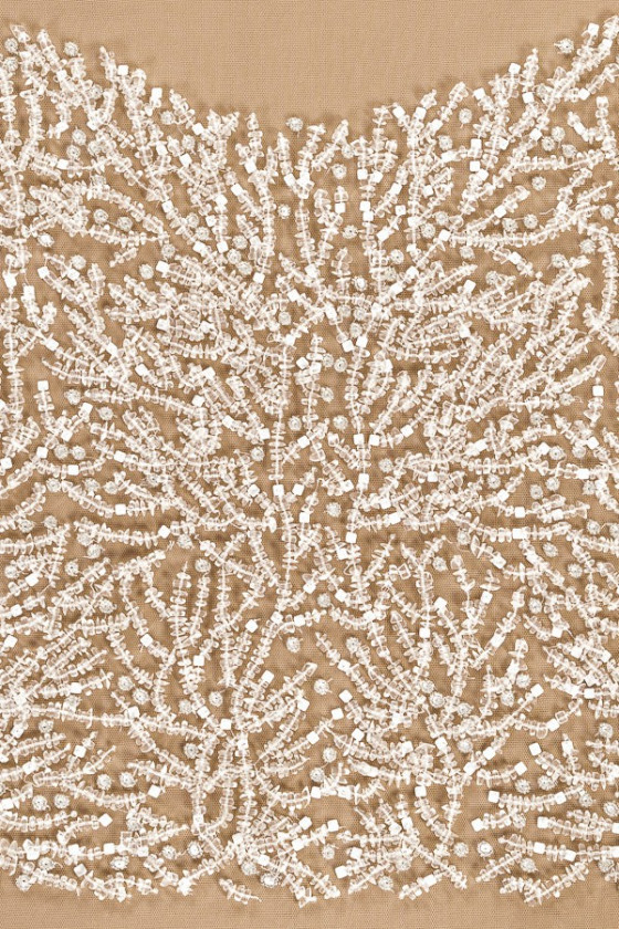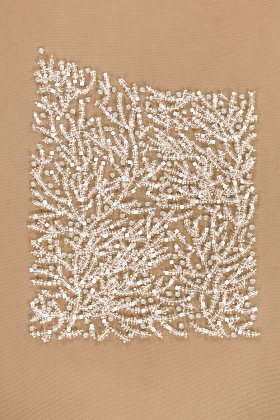 | szín: | ekrü, tejes kövek, lurex hímzés |