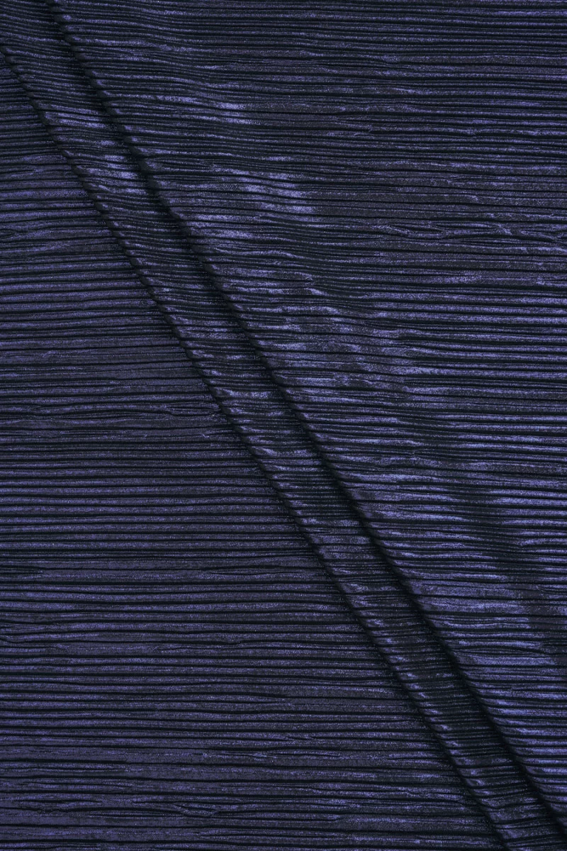 Lenyűgöző, fényes anyag, finoman redős mély, tintás sötétkék színben, amely lilába esik.