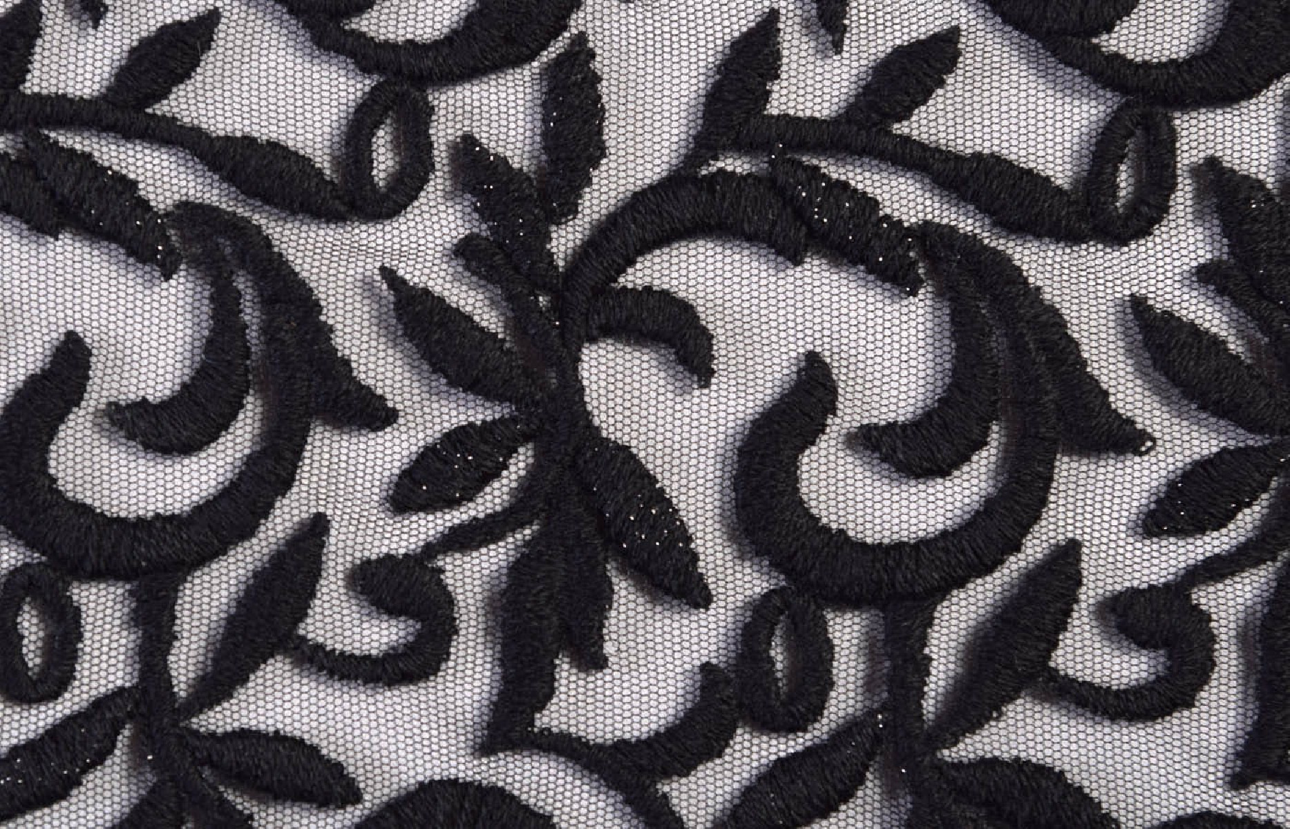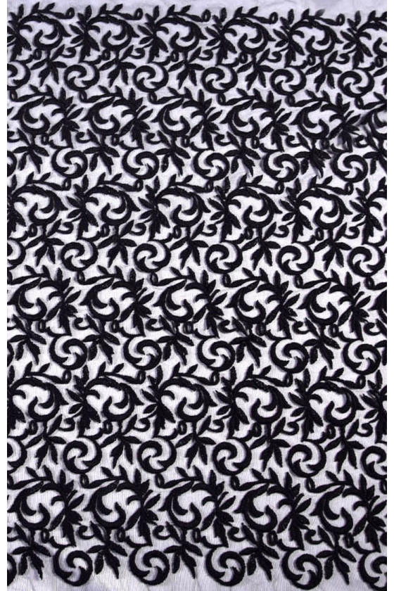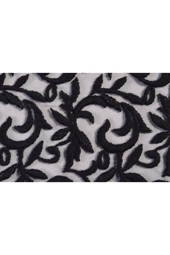 Érdekes javaslat tüll hímzéssel. Vastag, húsos hímzés. Az anyag tökéletes estélyi ruhákhoz vagy blúzokhoz. A hímzés szélessége kb. 82 cm.
