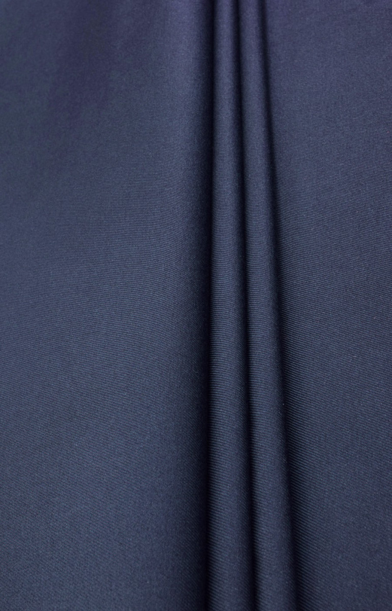 Vastagabb pamut poliészter és elasztán keverékével grosgrain szövésben. A szövet jól működik a szálakon, és alkalmas ruhák varrására használható. Szín: klasszikus sötétkék.