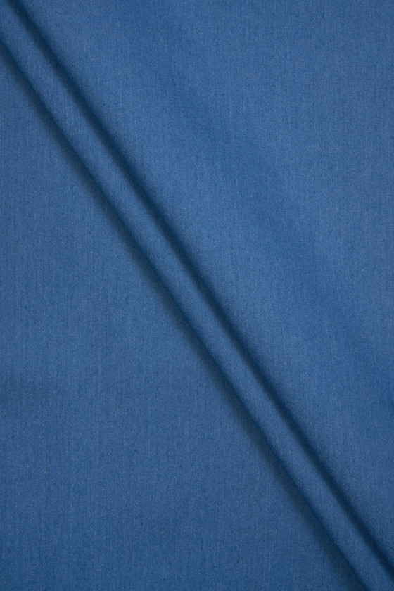 Olasz farmer klasszikus kék színben. Az anyag puha, rugalmas, közepesen vastag, finom grosgrain szövéssel. A farmer rendkívül sokoldalú anyag, tökéletes ruhákhoz, szoknyákhoz, nadrágokhoz vagy vékony katanákhoz.
