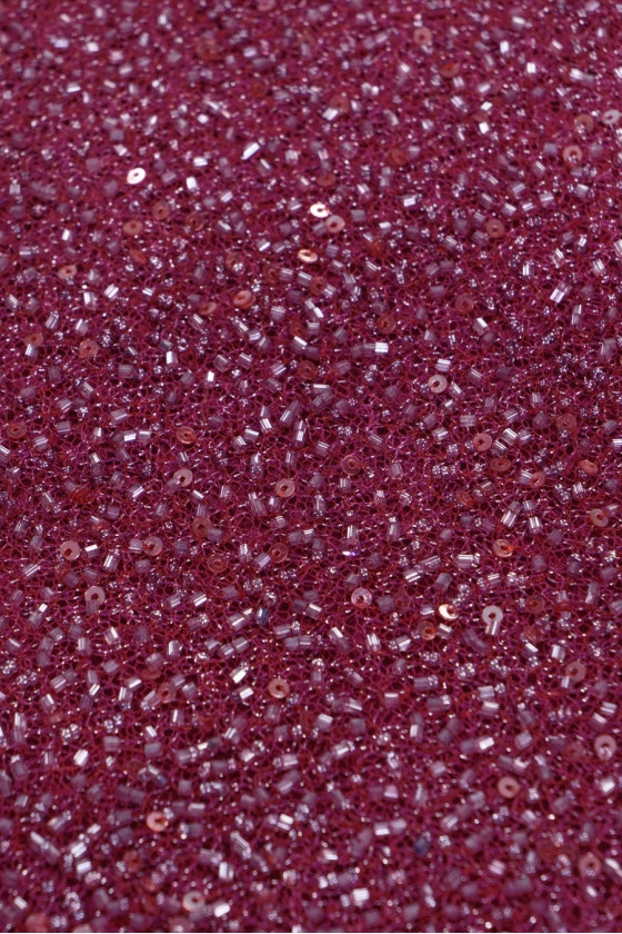 Fenomenális esti szövet sötét rózsaszín / amaránt színben - háló sűrűn hímzett gyöngyökkel. Kupon mérete 70cm * 140cm.