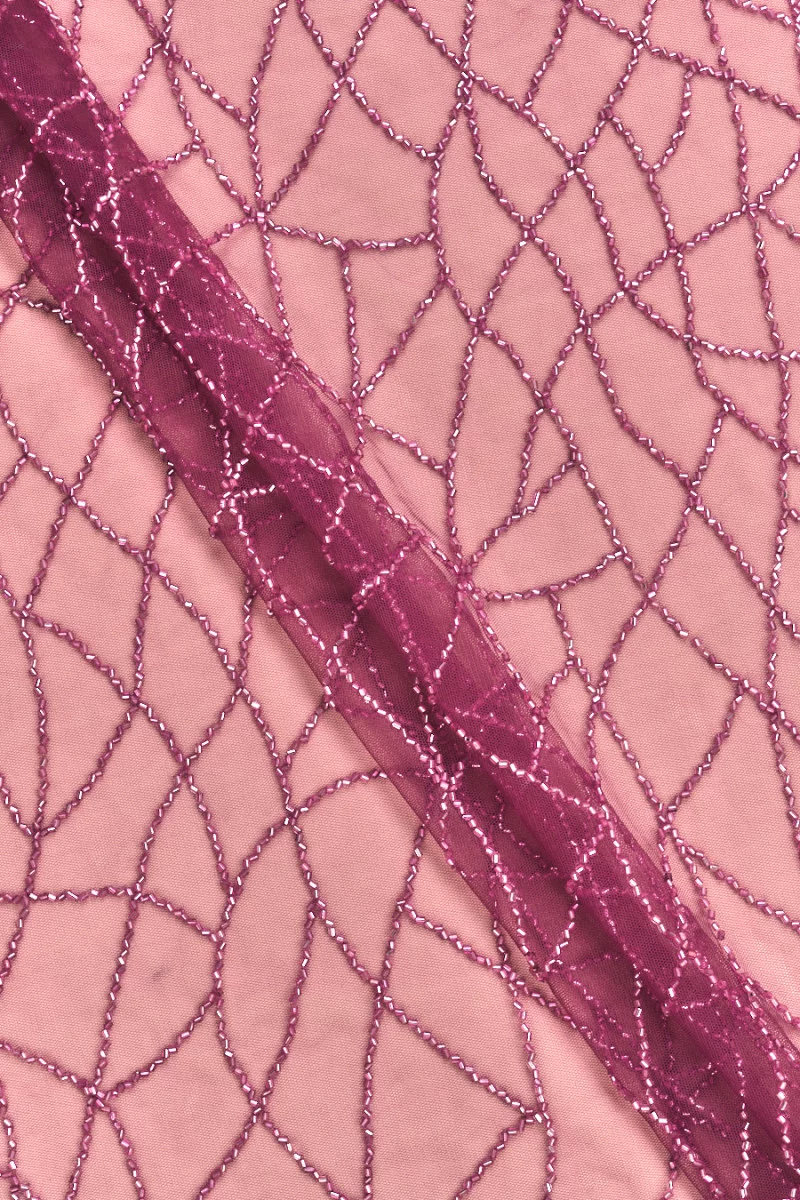 Olasz merev tüll klasszikus fülekkel, sötét rózsaszínben. Finoman díszített azonos színű hengeres gyöngyökkel. Gyémántszerű geometriai mintát alkotnak, amely a szövet egyik széle felé sűrűsödik (nincs dekoratív felület). A szövet nagyon hatékony, átlátszó (bélést igényel), nehéz, enyhén rugalmas - körkörösen varrjuk. Fantasztikus javaslat estélyi ruha, szoknya vagy blúz varrására egy nagyon érdekes kiadásban.