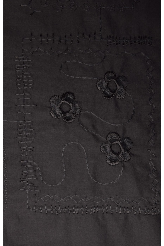 A hímzett batiste pamut 100% -ban természetes és újrahasznosítható. Az ebből készült ruhák tökéletesek a forró napokra. Ingek, blúzok, ruhák vagy szoknyák varrására ajánljuk. Szövet és hímzés színe - fekete.