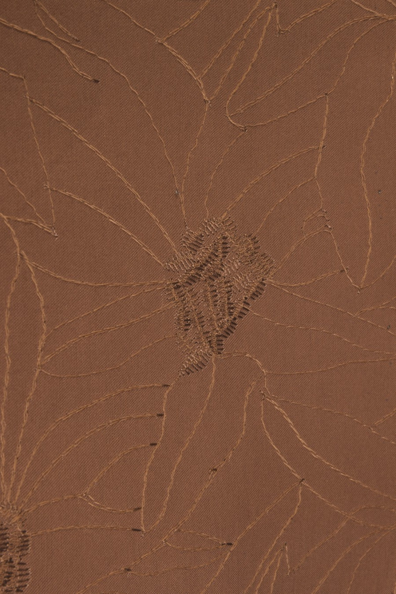 Barna, enyhén rugalmas pamut virágmintával hímzett. Az ebből készült ruhák tökéletesek a forró napokra. Ruhák, szoknyák varrásához vagy dekoratív anyagként ajánljuk.