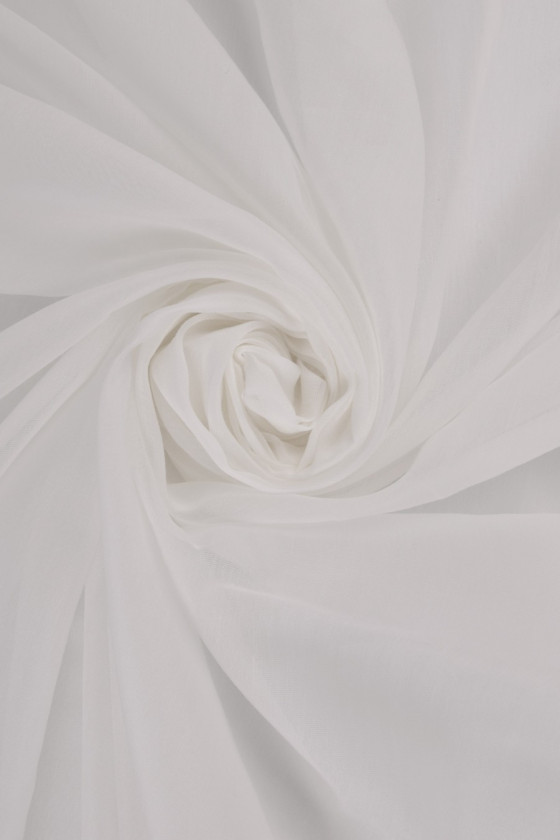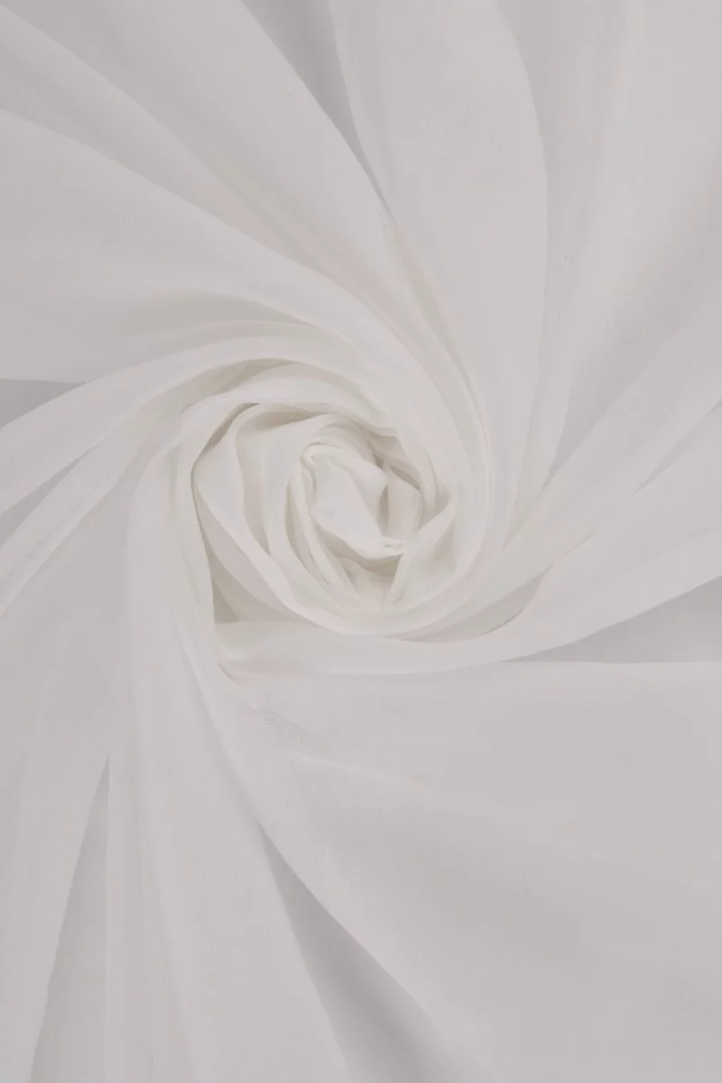 A fehér színű vékony pamut batista finom, szellős anyag, amely ideális a nyári meleghez. 100%-ban természetes szálakból szőtt.