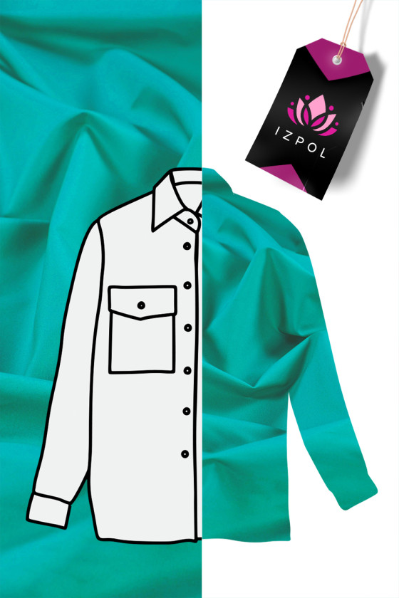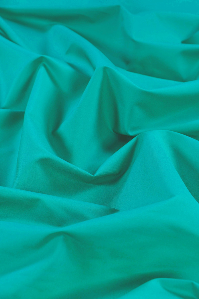 Olasz ing pamut, rugalmas türkiz. A pamut 100% -ban természetes rost. A pamutszövetek tartósak, nem kopnak gyorsan, hosszú ideig megőrzik tulajdonságaikat, tökéletesen lélegzőek, lélegzőek, ami magas kényelmet biztosít. Rugalmas, vékony, de átlátszatlan anyag - tökéletes ing, blúz, ruha varrásához.