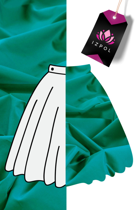 Olasz pamutszövet elasztán hozzáadásával, tengerzöld színben. Közepes vastagságú, rugalmas, sima, enyhén fényes szövésű anyag, amely ruha, szoknya vagy nadrág varrására szolgál. Nagyon jó minőségű természetes anyag, elasztán hozzáadása kényelmesebbé teszi a használatát és kevésbé ráncol. Pótolhatatlan anyag tavasszal és nyáron.
