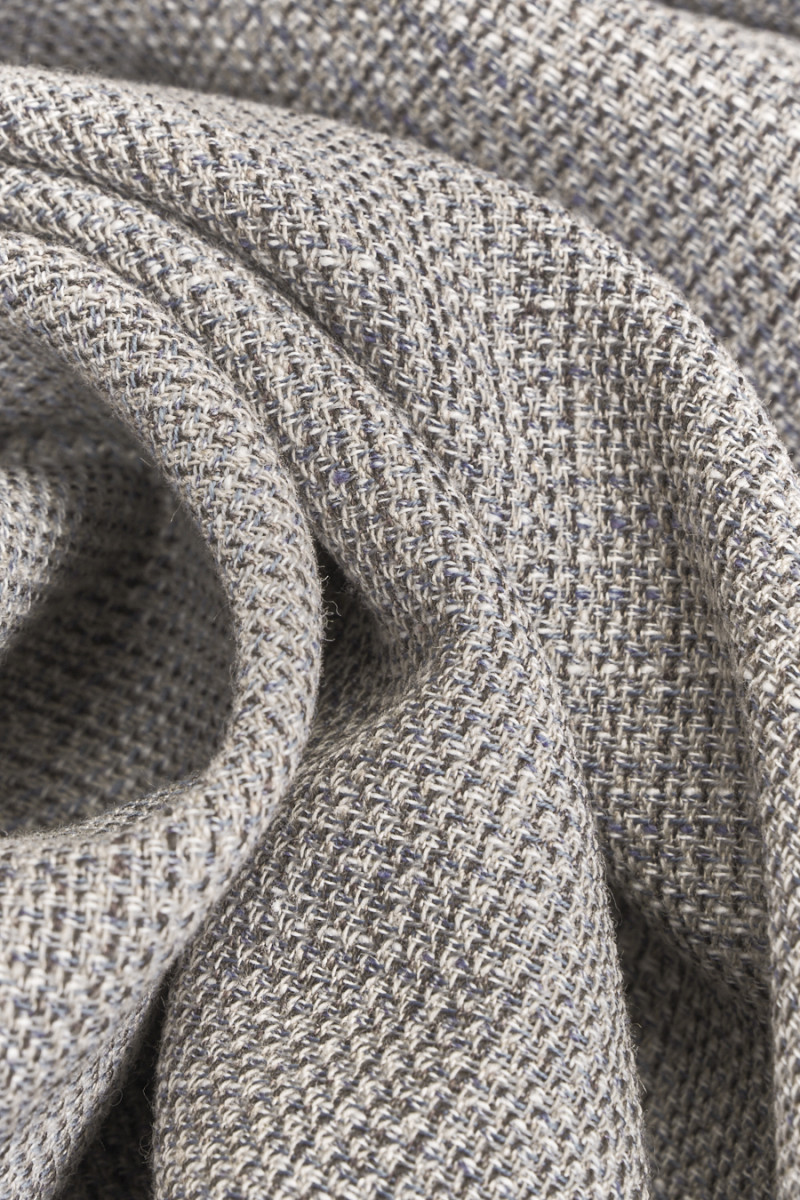 Olasz szövet gyapjú, pamut, vászon keveréke, elasztán hozzáadásával bézs, barna és kék színben. A szövet vékony, enyhén rugalmas, jól átlátszatlan, és a szövésben vászonszövetnek tűnik. Klasszikus ajánlat nadrágokhoz, dzsekikhez, ruhákhoz, szoknyákhoz és rövidnadrágokhoz.