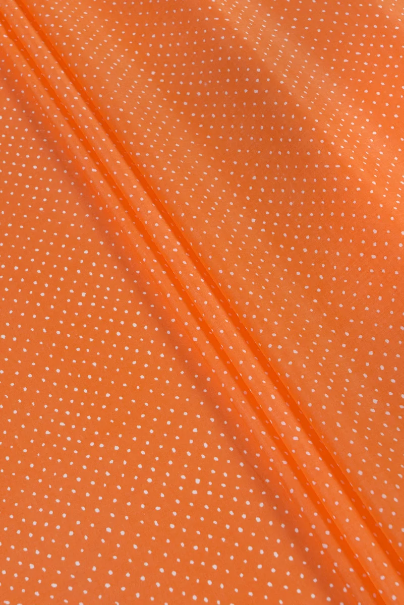 A narancssárga selyem-pamut batiste fehér pöttyökkel finom, tágas anyag, amely ideális a nyári meleghez.