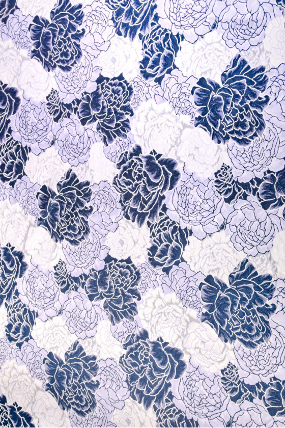 Jacquard nagy sötétkék, levendula és szürke virágokkal. A szövet gyönyörűen borít. Kérjük, tisztítsa meg vegyen!