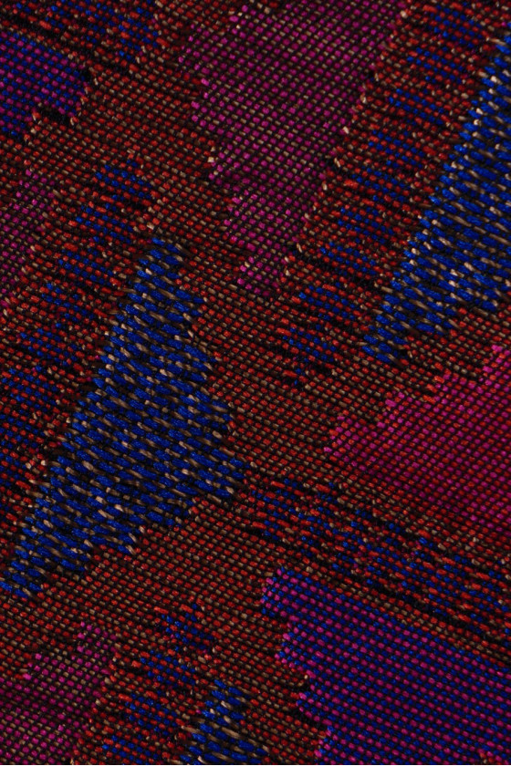 Olasz, vastagabb jacquard szövet kis, geometriai mintákkal. Színek: lila, kék, piros, rózsaszín.