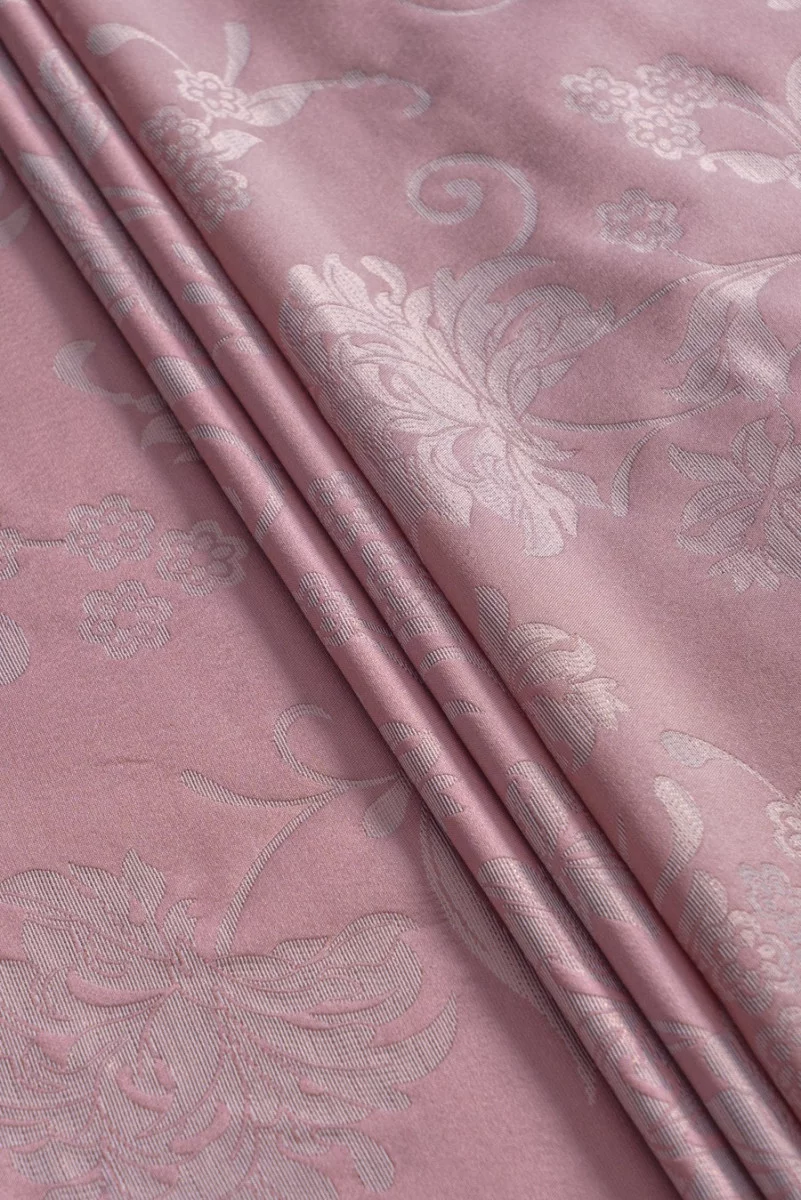 Olasz jacquard jelmezszövet világos rózsaszínben, ekrü virágokkal.
