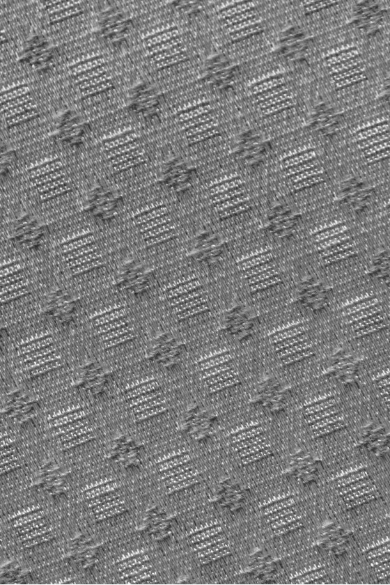 Olasz jacquard jelmezszövet ezüstszürke színben. Nagyon finom geometriai mintázatú anyag - gyémántok és négyzetek. A szövet háttere enyhén fényes, a minta matt. Az anyag vékonyabb, merev, enyhe fényű - tökéletes ruha, szoknya, jelmez, nadrág varrásához.