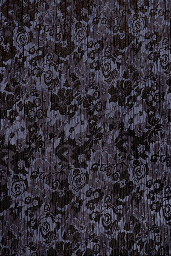 Olasz jacquard jelmezszövet tompa lila színben, barna virágok motívumával. Vékony, puha, nagyon érdekes, hullámos textúrájú szövet - tökéletes ruha, szoknya, jelmez varrásához vagy dekorációs célokra.