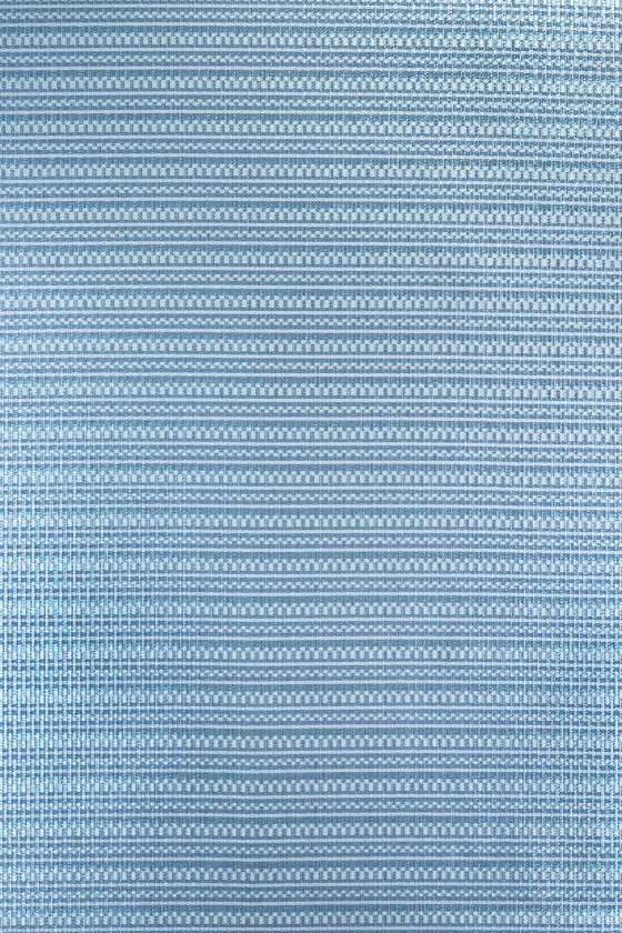 Olasz jacquard jelmezszövet kék színben, ezüst lurex szállal. A szövet finom geometriai motívummal rendelkezik, amely 2 cm széles vízszintes csíkokat hoz létre.