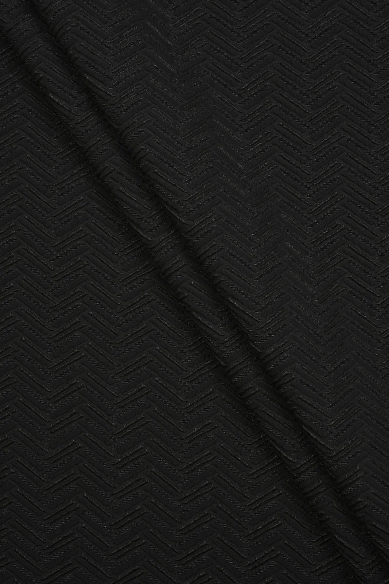 Olasz jacquard szövet halszálkás motívummal, három színben - fekete, heather rózsaszín és barna, rézzel. A vonalakba helyezett rendszeresen dombornyomott mintát 5 cm-enként megismételjük, fényes szálral díszítve. A szövet közepes vastagságú, átlátszatlan, puha és rugalmas. Tökéletes jelmez, ruha, szoknya, nadrág és vékony kabát varrására.